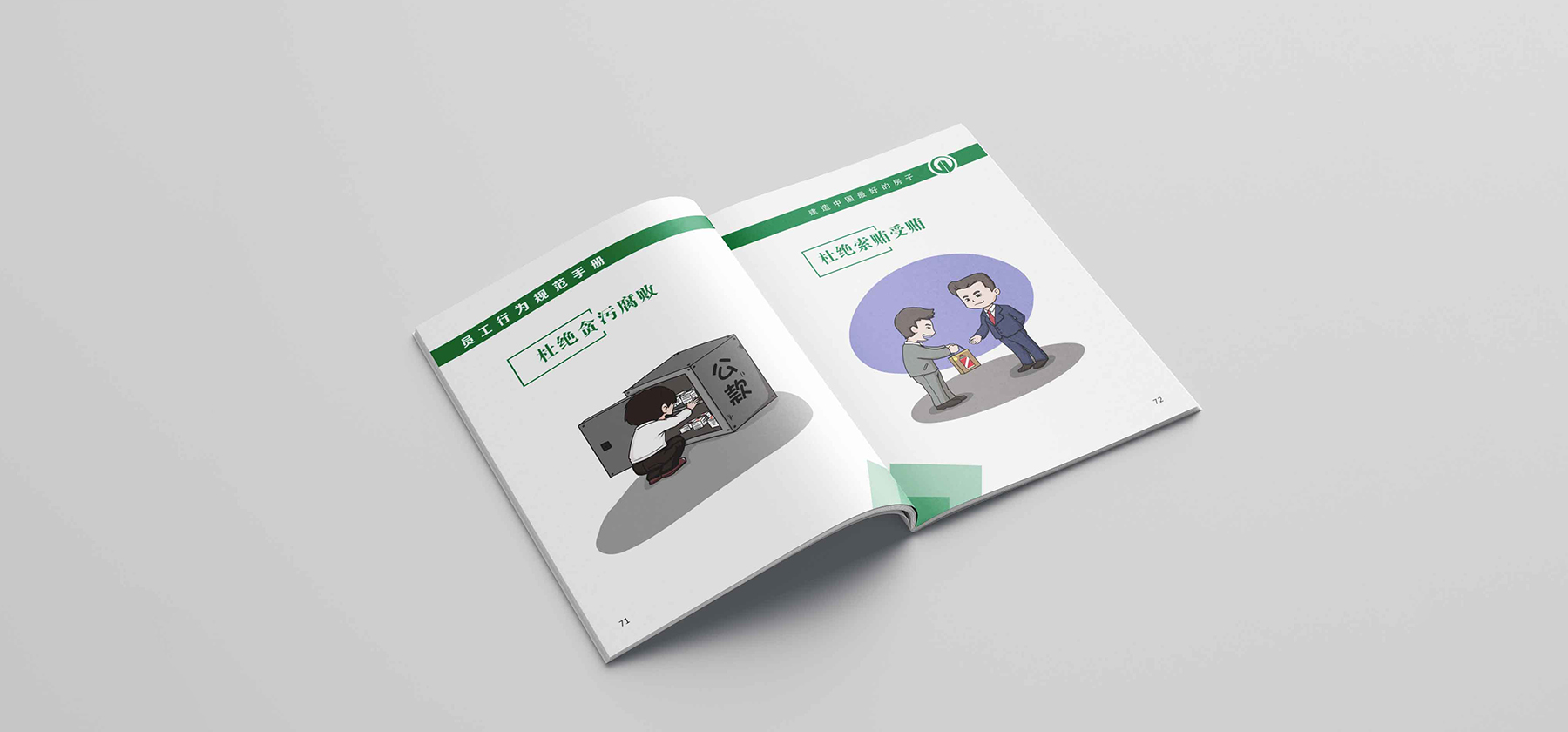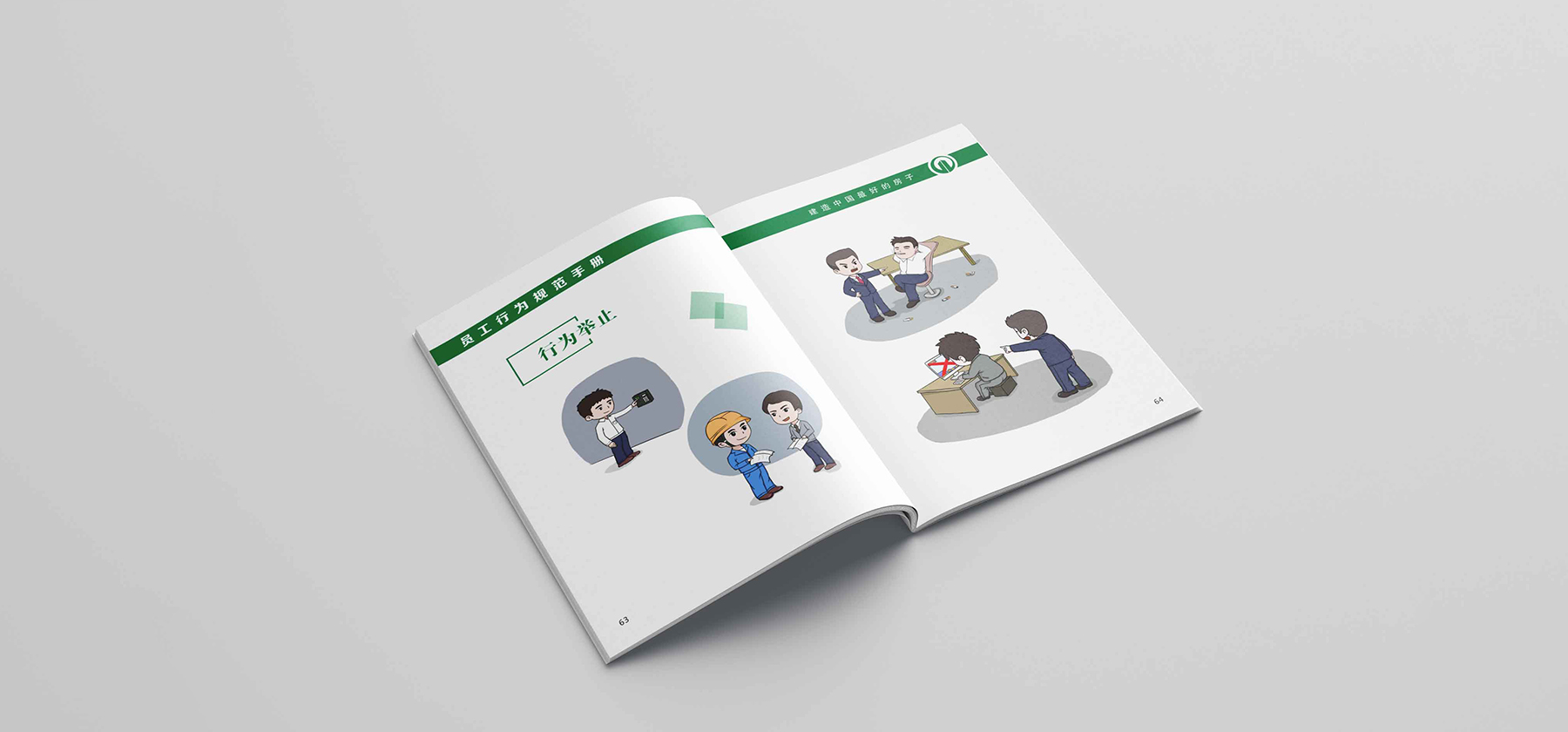 大多數(shù)企業(yè)的員工手冊(cè)都是以文字為主,河南五建員工手冊(cè)則以插畫為主,讓人們很容易就能明白什么是可以做的,什么是不能做的。手繪員工手冊(cè)非常受員工的歡迎。